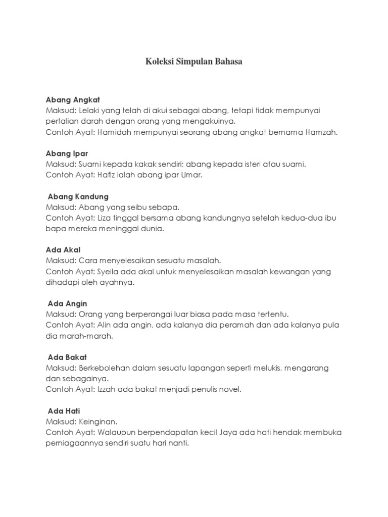 Contoh Ayat Simpulan Bahasa Dan Maksud Senarai Peribahasa Membalik Buku Halaman 1 8 Anyflip